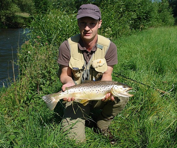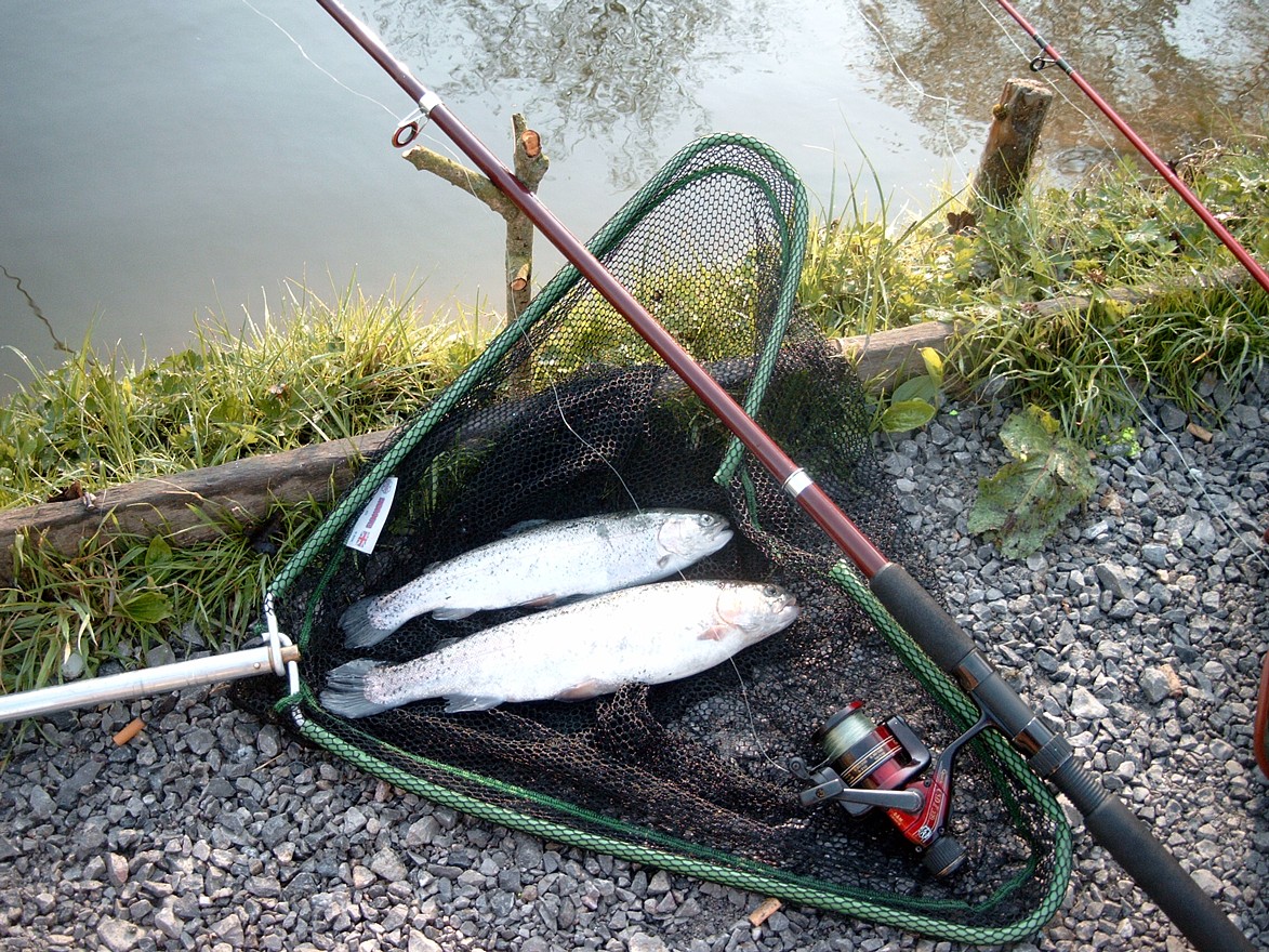 mit Fisch aus der Lippe? Das wäre genau die richtige Größe für meine Paella-Pfanne Aber: Leider nein,- kein Gewinn! Der Fisch, vermutlich eine Meerforelle, war geschützt und der Angler (Norbert Wilde) musste sie lebend in die Lippe zurücksetzen. |