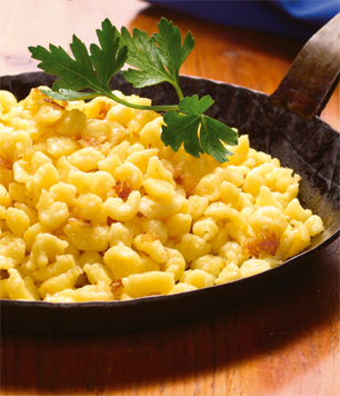 Schlemmer Späzle "Westfälische Art" Zutaten für 3 Personen: 400g Henglein Knöpfle Späzle (vom Rewe) 1 (kleine) Zwiebel, 4 Eier, 50g Frühstücksbeacon geräuchert 50ml Schlagsahne(30%) , Schnittlauch, Salz, Pfeffer, Chili, (Koblauch) Zubereitung: Zwiebel klein schneiden und mit Wasser und etwas Öl in einer beschichteten Pfanne weich kochen. Frühstücksbeacon in kleine Stücke schneiden und in die Pfanne geben. Späzle und Schnittlauch hinzu geben. Die vier Eier mit der Sahne verquirlen und drüber geben. Alles gut durchmischen und braten bis eine leichte Bräunung einsetzt. Regelmäßig durchmischen. Ganz zum Schluss würzen mit Salz, Pfeffer und Chili, (ggf. auch Koblauch dazu) Ideal als Beilage zu Steaks oder Schnitzel. Dazu eine Sauce nach Geschmack: - Rahmsauce - Pfeffersauce - Hollondaise o.ä. Ideen: - die Späzle mit Käse überbacken - Gemüse untermischen - gekochten Schinken untermischen |