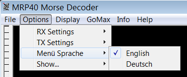 Hier können Sie die Menü-Sprache zwischen Englisch und Deutsch umschalten.