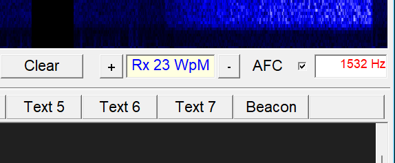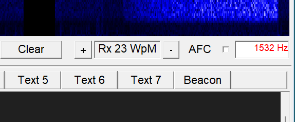 As soon the speed is detected the Rx..WpM is updated and the text-color turns to blue; indicating that auto-adapt is ongoing. The auto-adapt function quickly tracks the speed and no more manual interaction is needed. See Image: