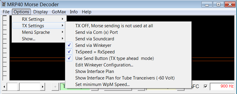Enter the TX tone frequency (Side Tone) or choose Tx-Freq.= Rx-Freq.